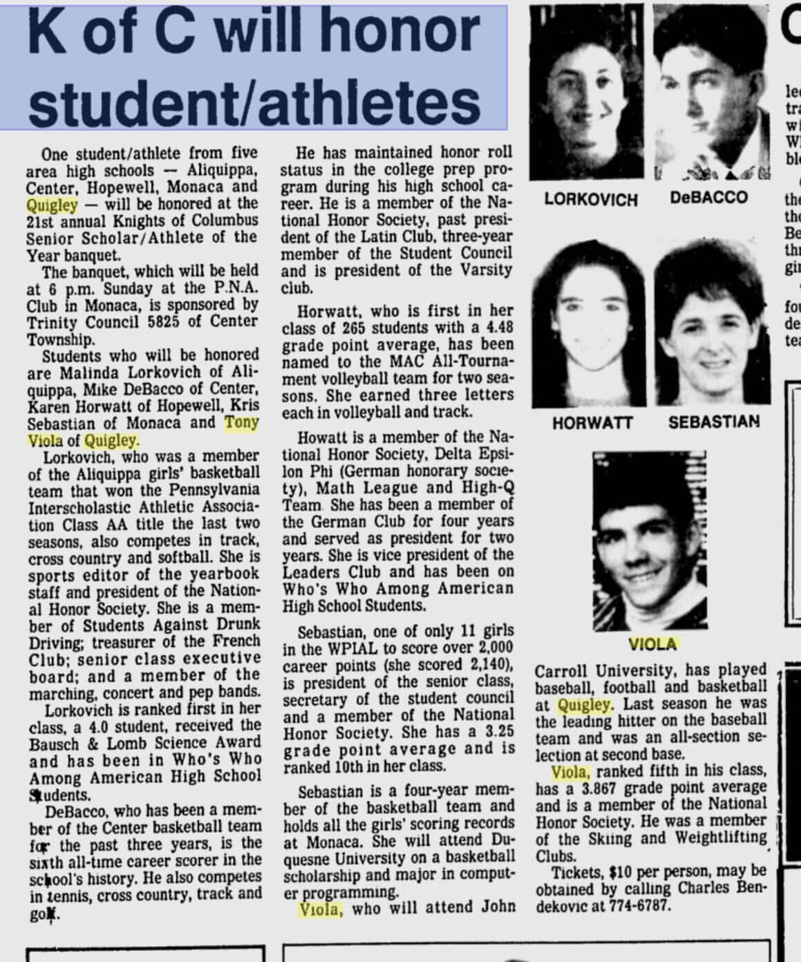 about Tony Viola honored by KOC