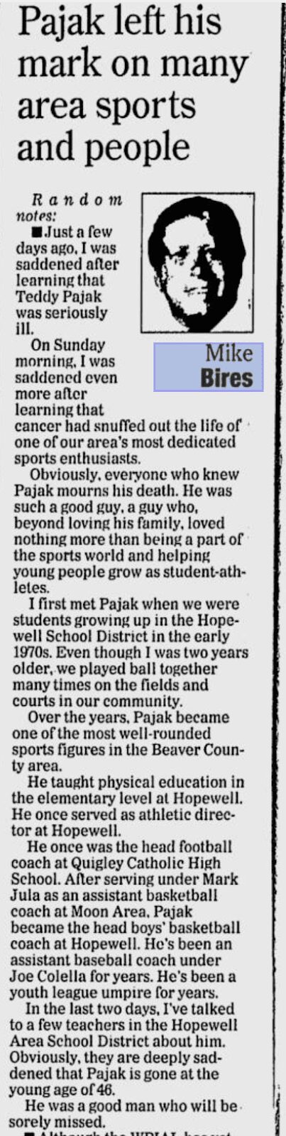 about Coach Ted Pajak Passes away