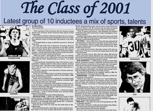 about Ed Driscoll selected to Beaver County Hall of Fame