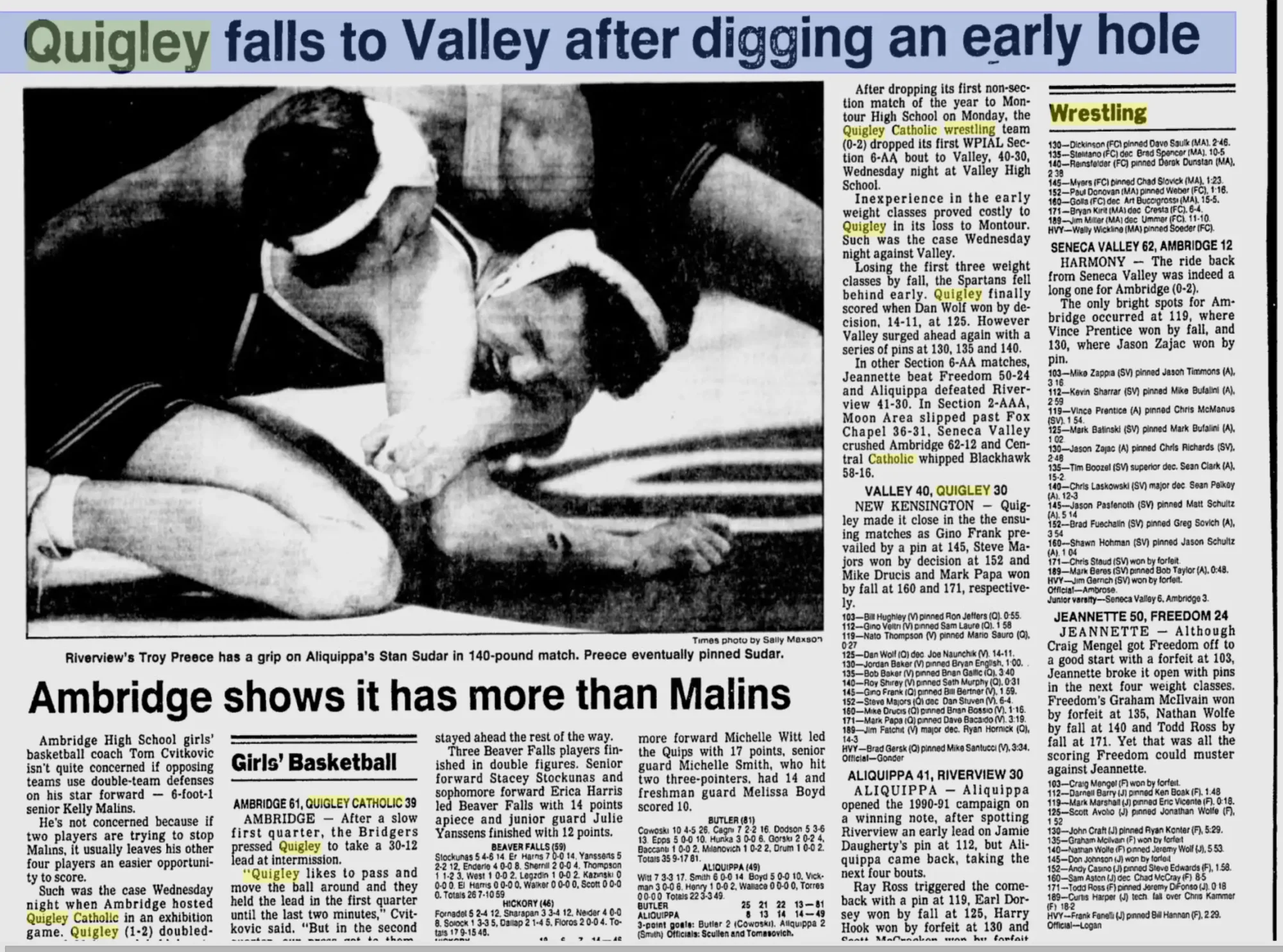 Quigley Wrestling – Gino Frank headed to WPIAL finals